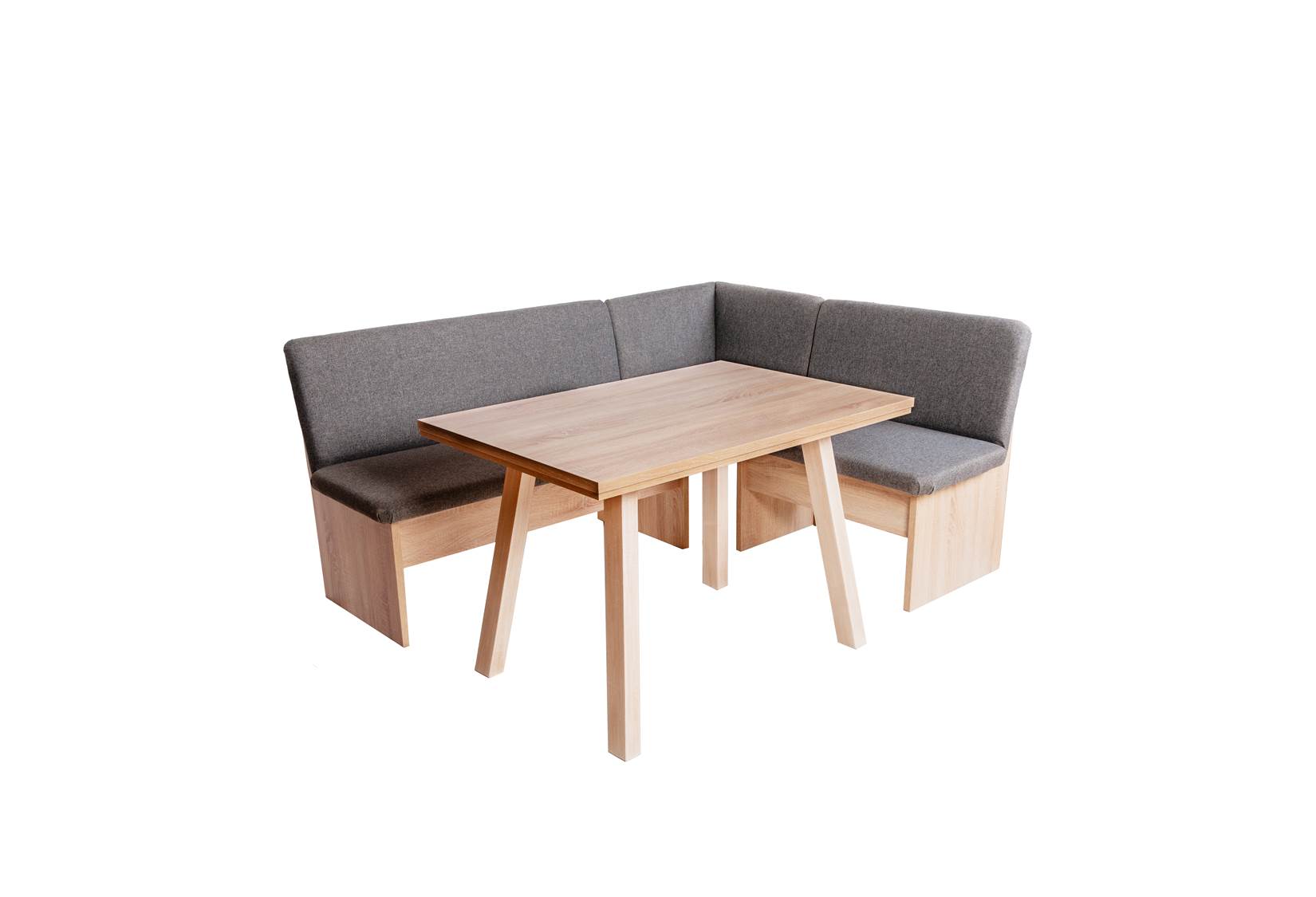 Eckbank 'Die Traditionelle' mit Truhe, Sitzbank mit Lehne, Eckbank, Truhenbank, Esstisch A-Füßen, Set 4-tlg., Stoff Grau