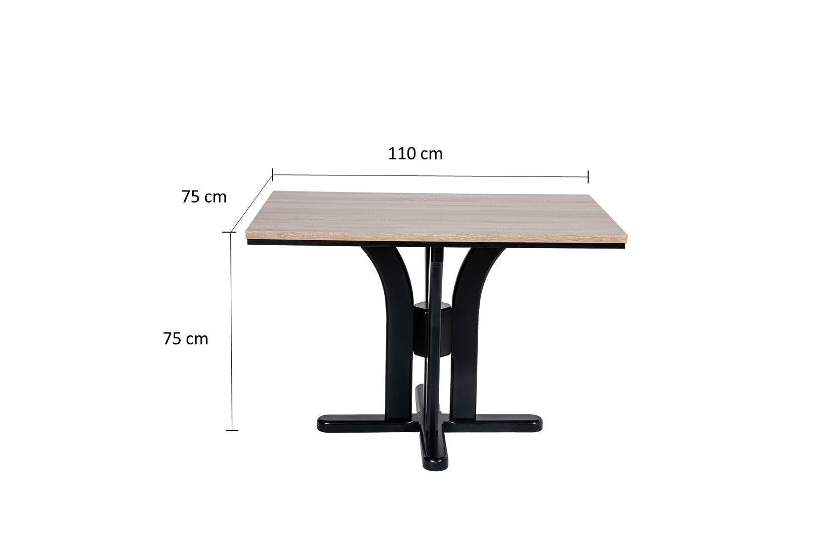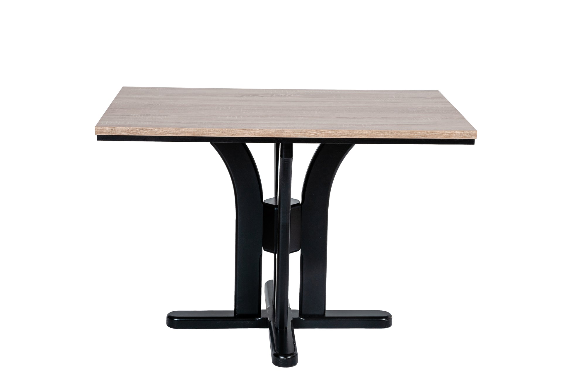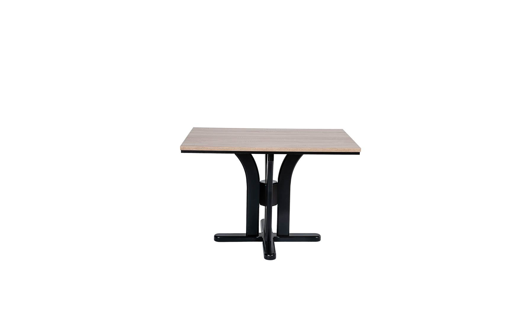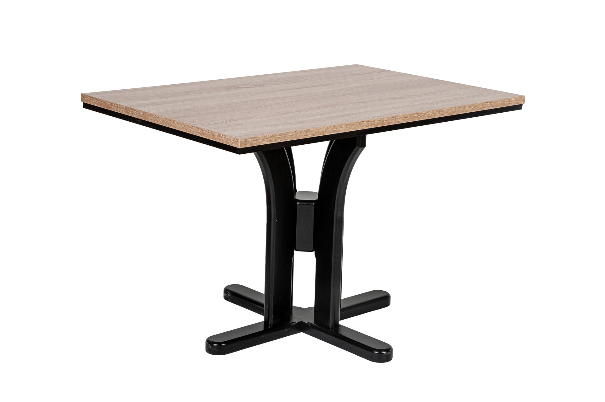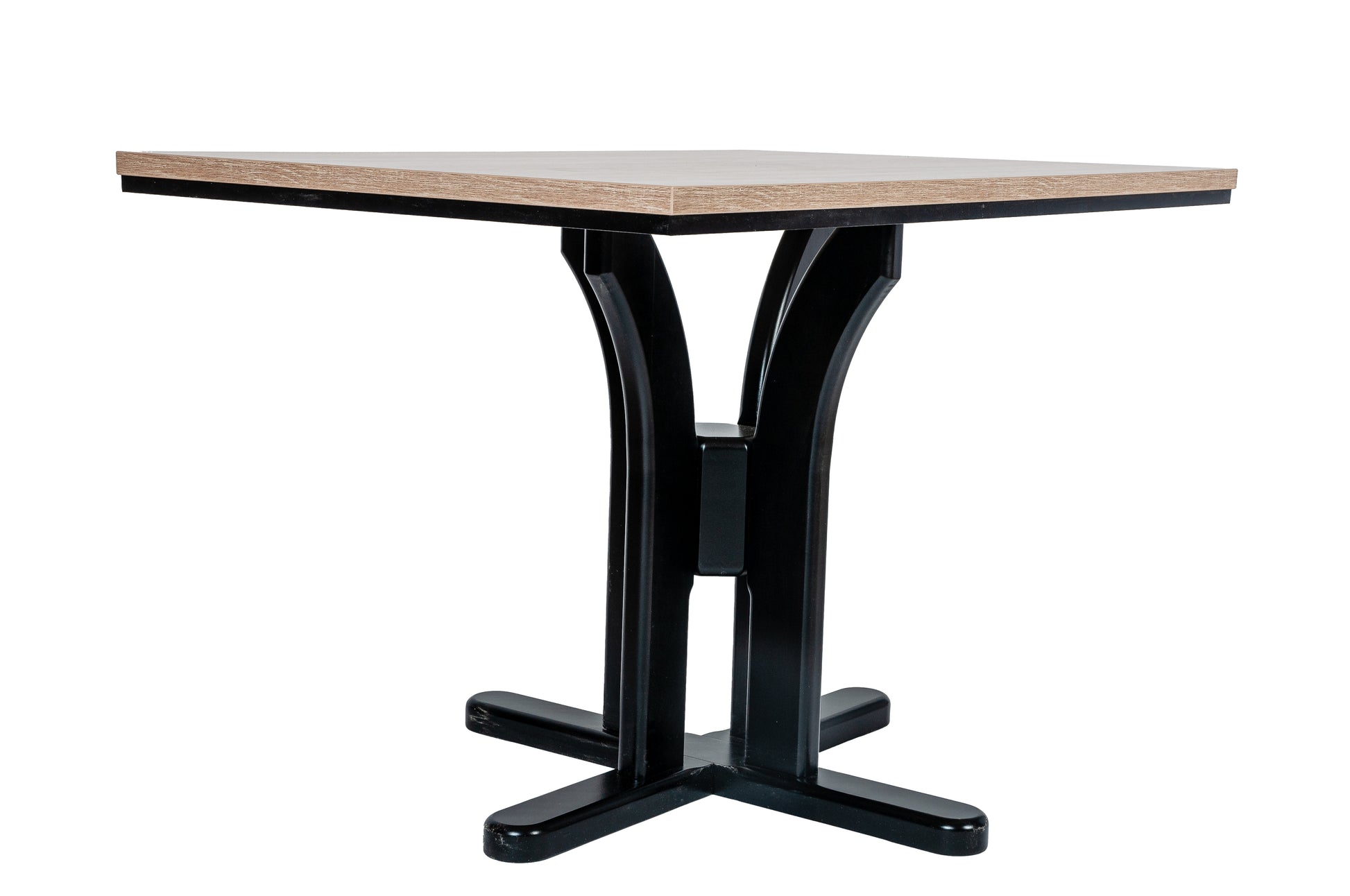 Der Tisch 'Der Mondäne' sorgt durch sein Fußgestell für optimale Stabilität, Komfort und Beinfreiheit. Die Tischplatte ist aus pflegeleichtem Premiumdekor in Eiche Optik gefertigt und mit einer sicheren, 2 mm ABS Kante umrandet.