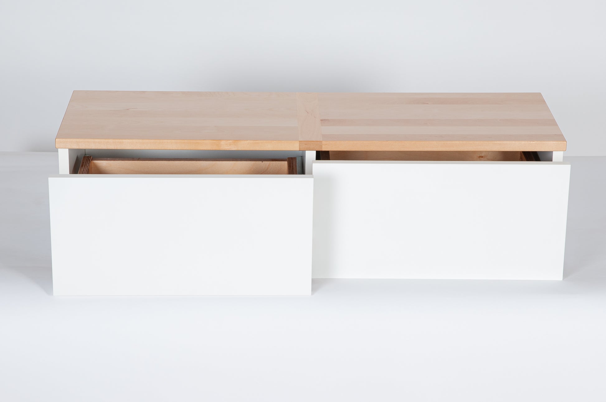 - Sideboard aus hochwertigem MDF farbig lackiert. Deckplatte Birke Massivholz A+ Qualität.
